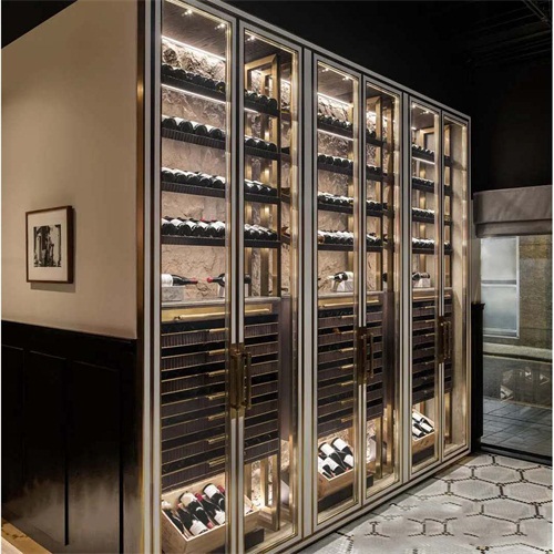 酒庄玫瑰金不锈钢恒温酒柜酒窖定做_不锈钢恒温酒柜厂家图
