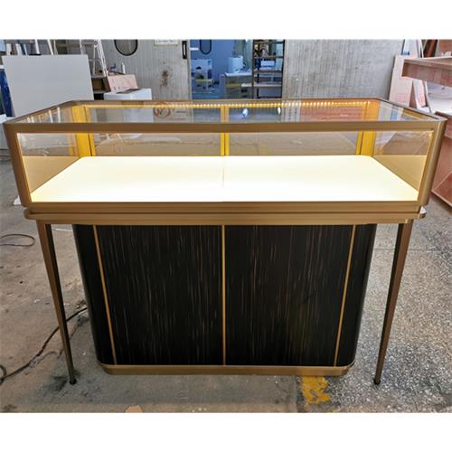 不锈钢展柜设计定做厂家为您展示的是2020新款拉丝香槟金不锈钢珠宝展柜_高端珠宝展示柜