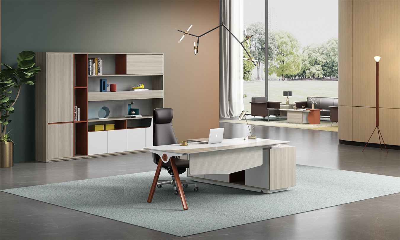 优格又名“有格”,代表了有品格、有格调。产品整体以“青春、时尚、动感”为设计主题,采用了大量的弧形与直线条交叉设计,将产品魅力展示的淋漓尽致。在一贯沉稳的深色办公配色中,大胆运用了白色、卡其棕色与浅色木纹的撞色搭配,打破产品配色原有的严肃氛围,赋予了产品生命力以及活力。独特的台脚与桌屏设计,动感十足,无不展示产品的细节之美。产品设计时尚,配置齐全,适合各种规模的办公场所。